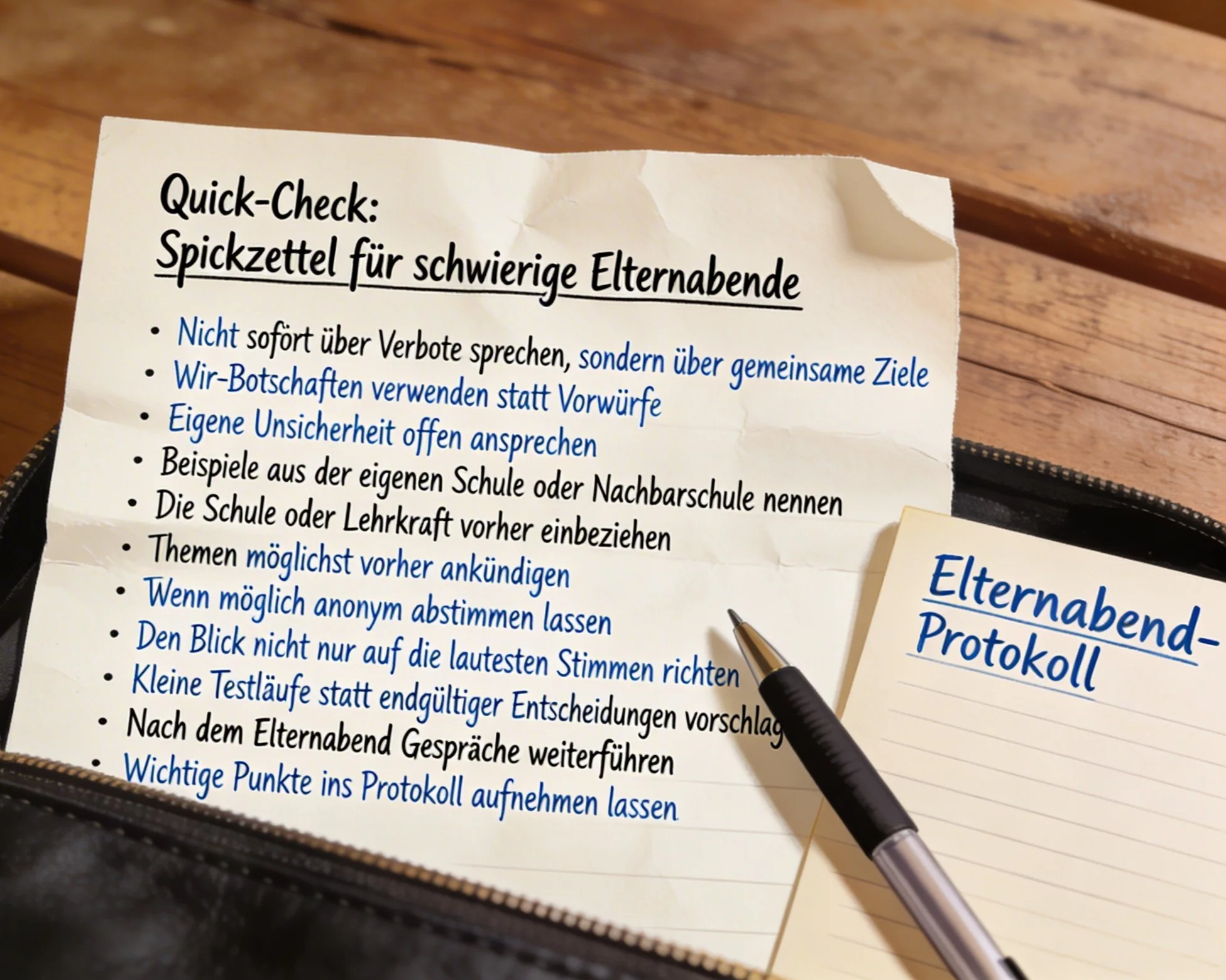 Quick-Check: Spickzettel für schwierige Elternabende
