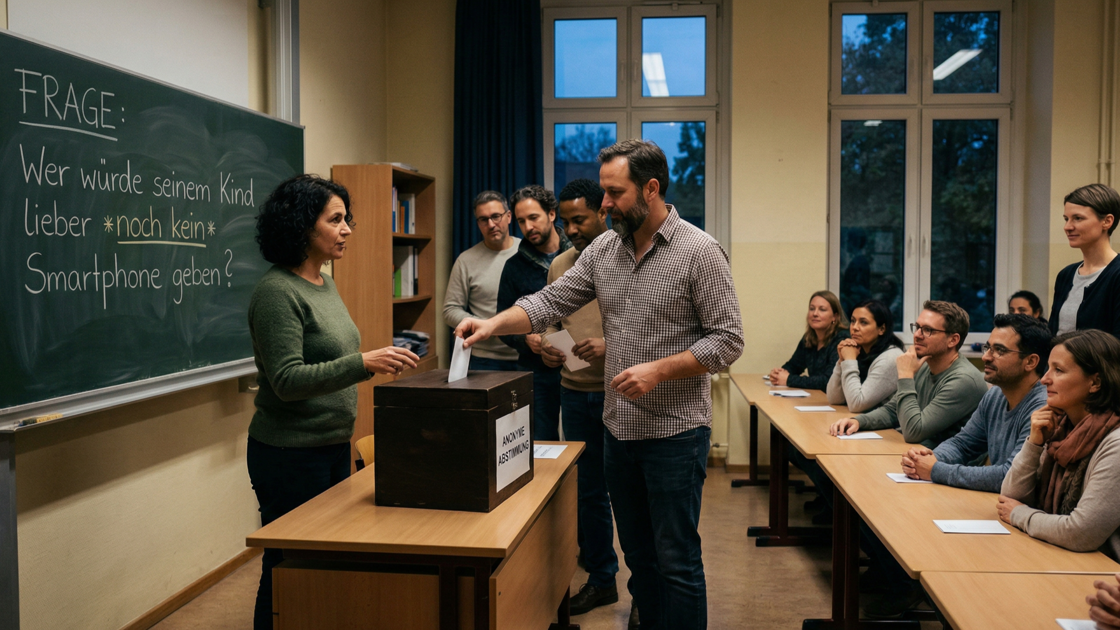 In vielen Klassen melden sich auf diese Frage öffentlich nur wenige Eltern. Sobald die Abstimmung anonym erfolgt, verändert sich das Ergebnis oft drastisch. In manchen Klassen haben sich bei anonymen Abstimmungen plötzlich über 80 oder sogar über 90 Prozent der Eltern dafür ausgesprochen, ihrem Kind eigentlich noch kein Smartphone geben zu wollen.